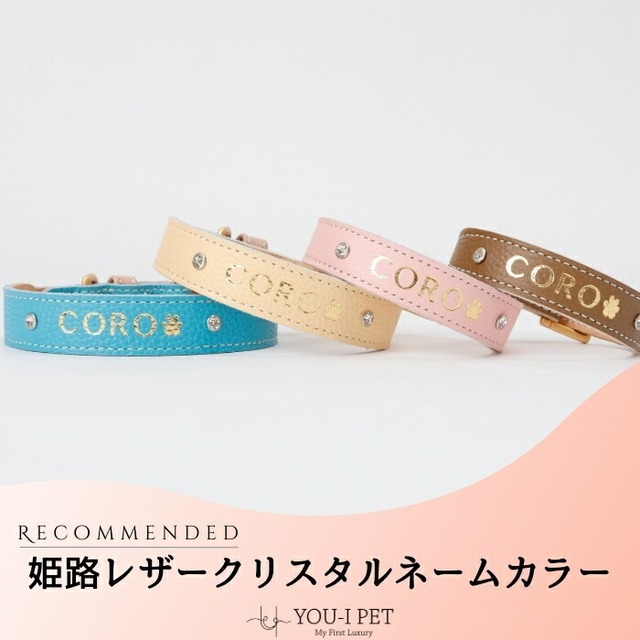 大切な愛犬のための特別なアイテム、クリスタルネームカラーが新登場!お名前を刻んで、我が子の魅力をさらに引き立てるこの首輪は、クリスタルの輝きが贅沢にあしらわれています。