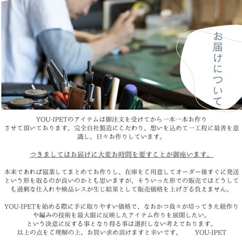 厳選された姫路レザーを使用しており、見た目の美しさだけでなく、丈夫さも兼ね備えています。愛情あふれるお名前の刻印が、愛犬の特別なアクセサリーとなり、あなたと愛犬との絆を深める一品です。