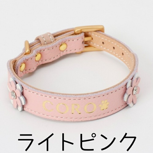 あなたの大切なお子様にぴったりな、フラワーネームカラーが新登場!お名前を刻んで、さらに愛らしさを引き立てるこの首輪は、お花とクリスタルが華やかに彩ります。