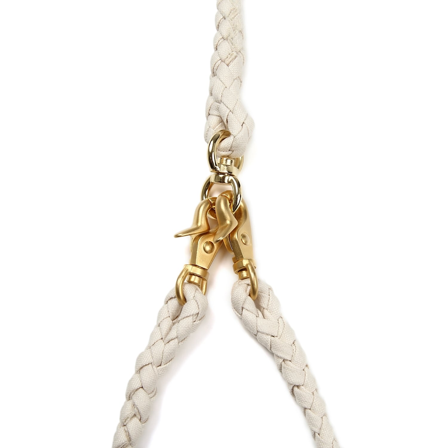 ハンドルツインリードは、ハンドル+リード編み部+カプラー編み部2本で構成されており、リードとカプラー2本の接合は回転カンを使用し、リードの金具は稼働領域の広いレバーナスカンを使用。リードのねじれを軽減する為の設計なっております。