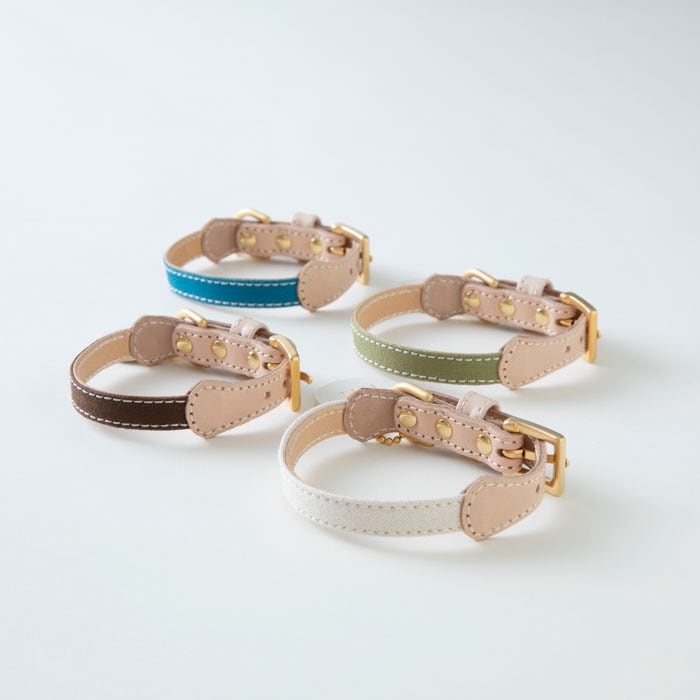 10色の紀州帆布と姫路レザー(ヌメ革)を使用し、シンプルな首輪に仕上げました。