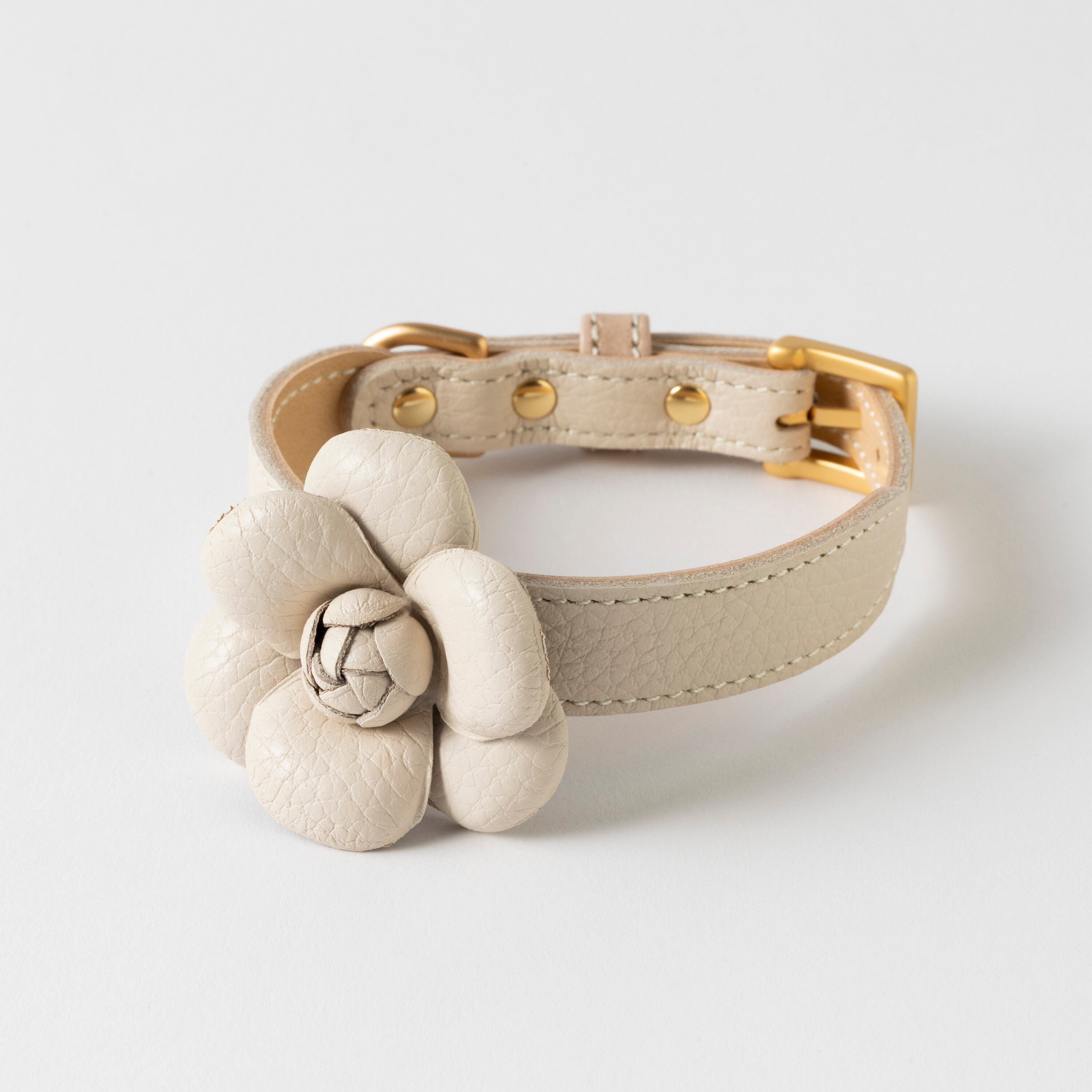 イタリアンコサージュカラーは、品のあるアクセサリー感覚で愛犬の首元を華やかに演出します。エレガントなデザインと柔らかい風合いのイタリアンレザーによって、愛犬のスタイルに上品なアクセントをプラスします。