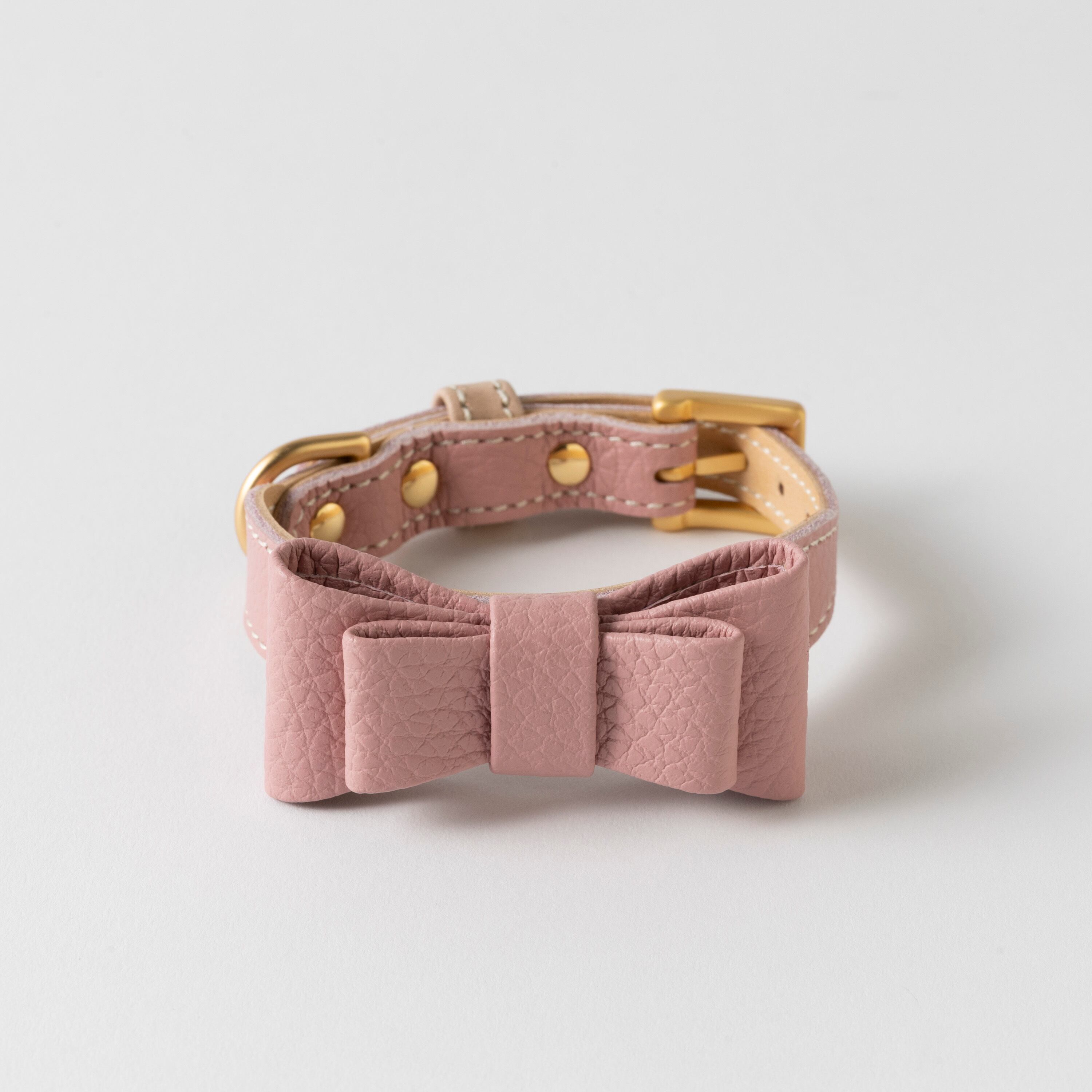 リボンのデザインは、イタリアンテイストで上品さも兼ね備えています。おしゃれ好きな飼い主さんには特におすすめです。イタリアンレザーの繊細な色出しは、愛犬の毛色に合わせてお選びいただけます。