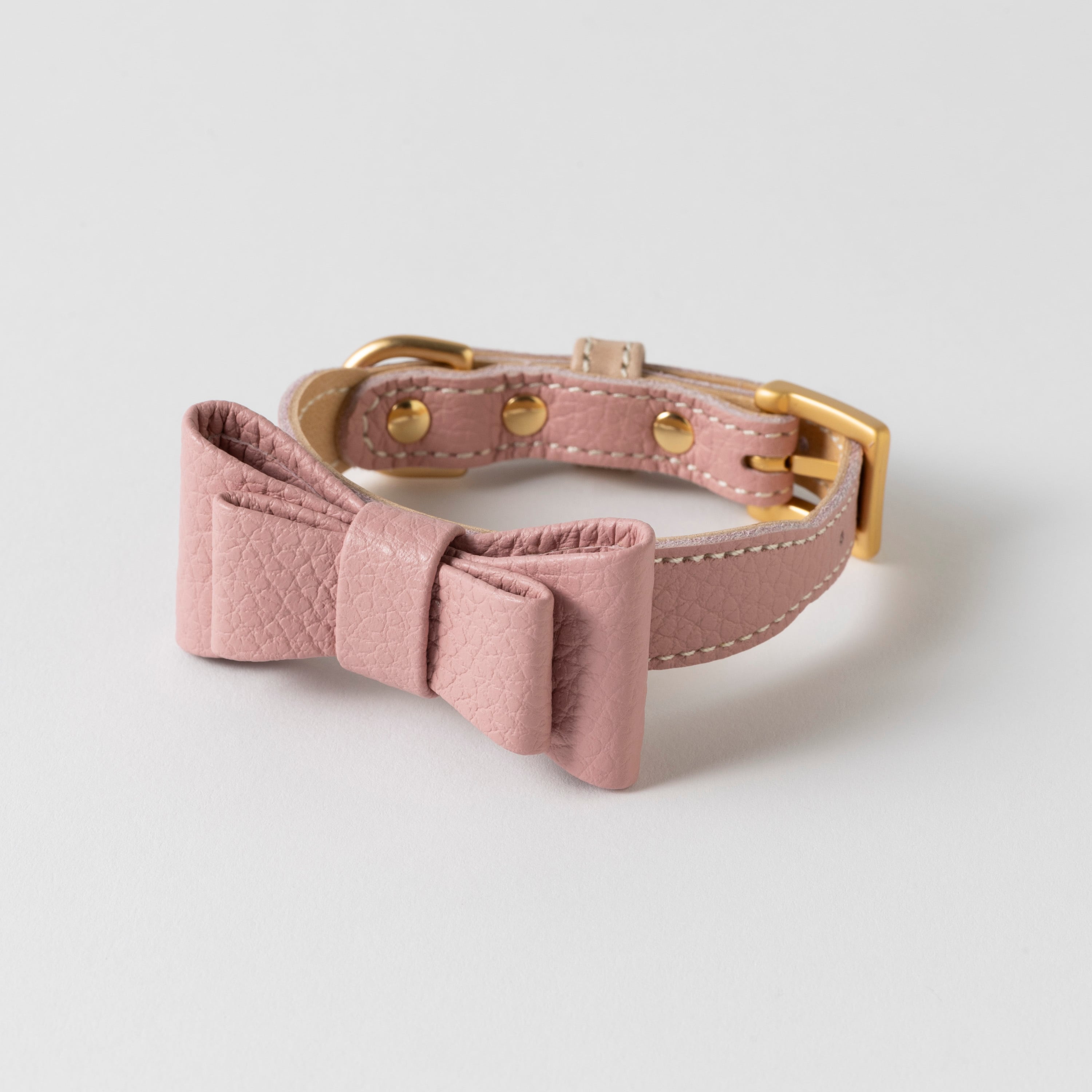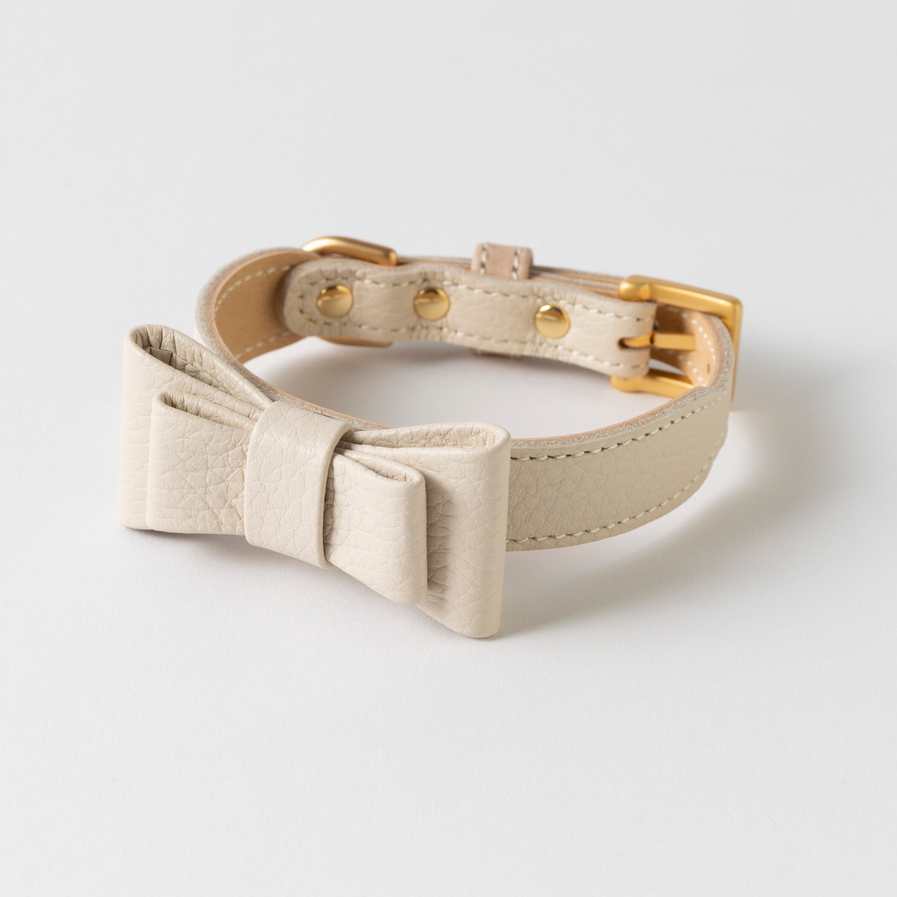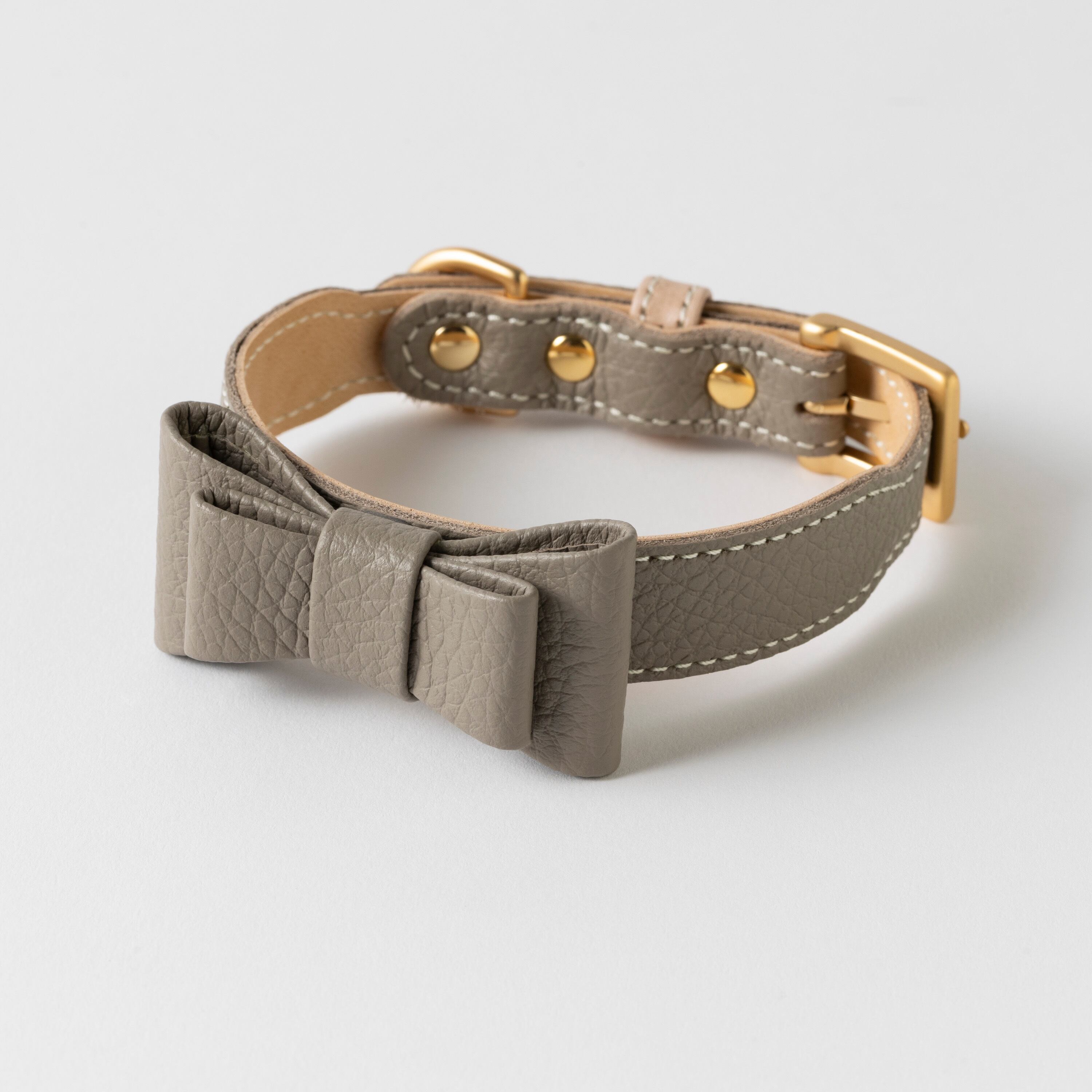 リボンのデザインは、イタリアンテイストで上品さも兼ね備えています。おしゃれ好きな飼い主さんには特におすすめです。イタリアンレザーの繊細な色出しは、愛犬の毛色に合わせてお選びいただけます。